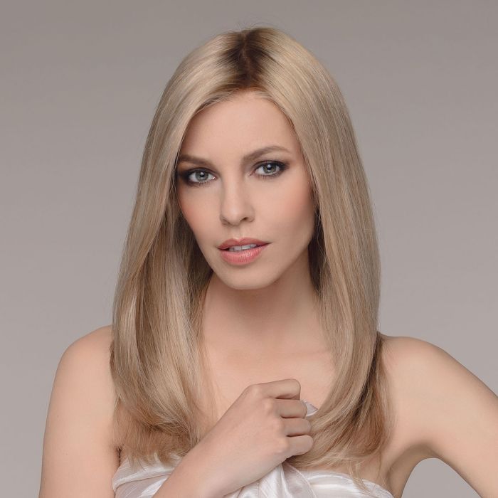 Sur la photo, le mannequin porte la couleur Blond sable avec racines foncées.