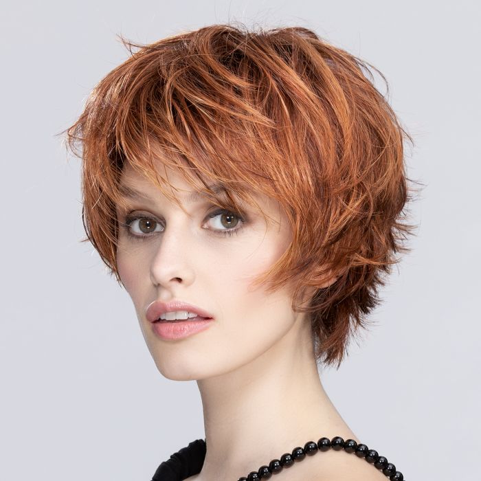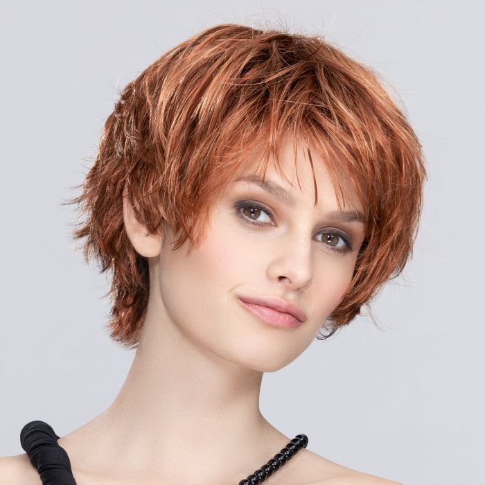Sur la photo, le mannequin porte la couleur Roux safran avec racines foncées.