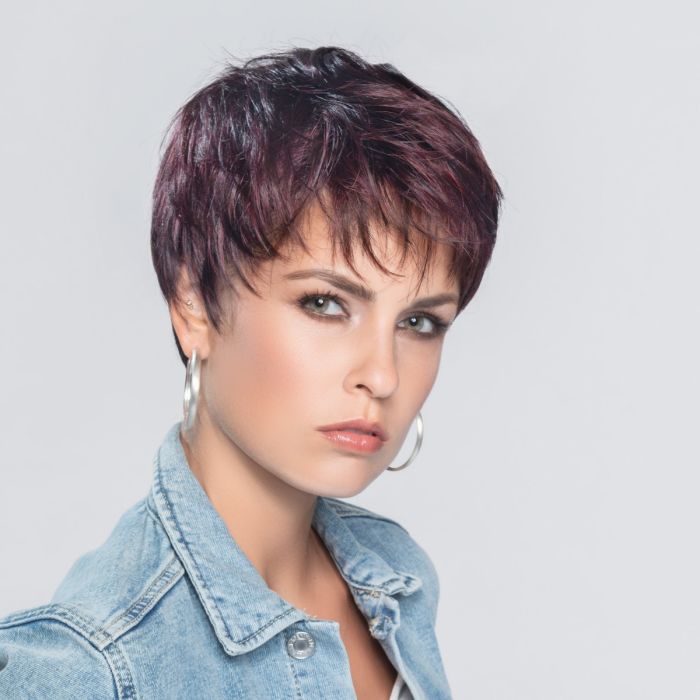 Sur la photo, le mannequin porte la couleur Châtain Mélange aubergine.