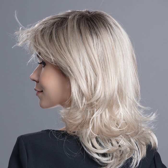 Sur la photo, le mannequin porte la couleur Blond champagne avec racines foncées.